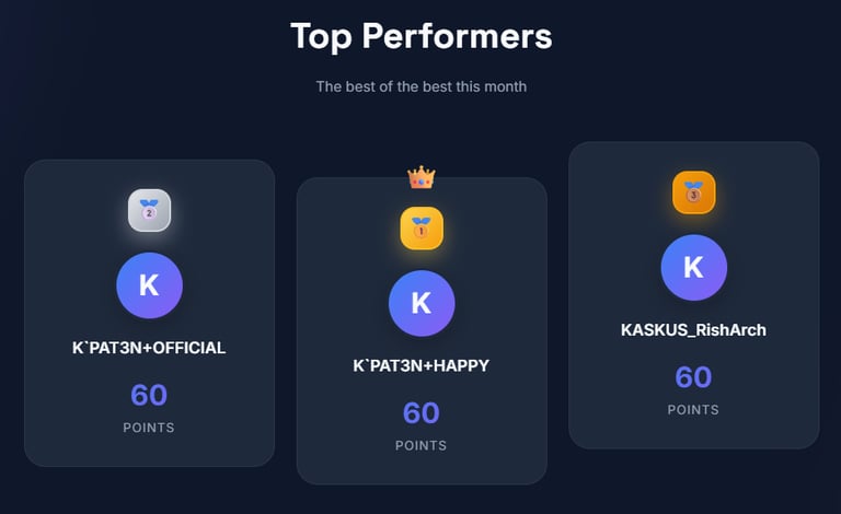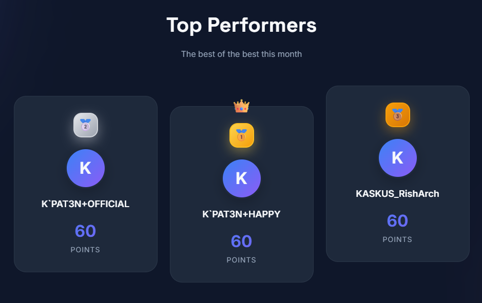 Perhitungan Total Point masih dalam tahap analisis dapat berubah sewaktu-waktu. Jika mempunyai saran untuk memajukan clan KASKUS Point Blank, feel free untuk menghubungi pengurus clan.